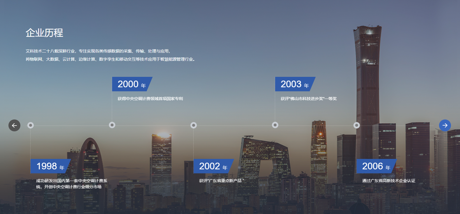 廣東艾科技術股份有限公司成立于1997年,是國內(nèi)領先的智慧能源管理整體解決方案服務商,2017年艾科在新三板掛牌,股票代碼871148。艾科一直堅持自主創(chuàng)新,擁有強大的產(chǎn)品研發(fā)能力,致力于以管理促進節(jié)能,以技術創(chuàng)新節(jié)能,為國內(nèi)外客戶提供建筑能源管理、智慧水務、智慧供熱、綜合節(jié)能服務四大領域的整體解決方案,助力客戶實現(xiàn)能源管理信息化、自動化、智能化和精細化,助力不同業(yè)態(tài)實現(xiàn)綠色節(jié)能與降本增效,實現(xiàn)“雙碳”目標。